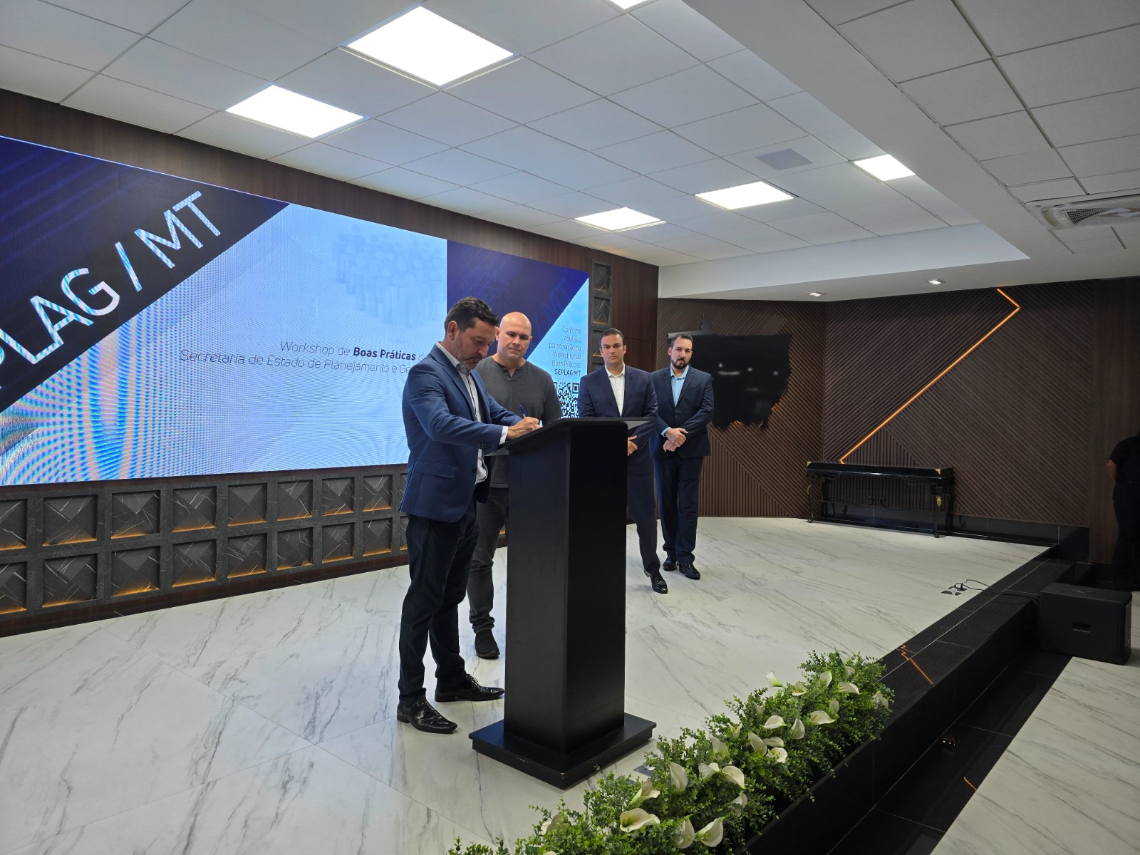 A Secretaria de Estado de Planejamento e Gestão (Seplag-MT) promoveu nesta segunda-feira (24.11), o Workshop de Boas Práticas, um encontro com secretários municipais e representantes das Prefeituras de Cuiabá e Várzea Grande, no Auditório Cloves Vettorato, no Palácio Paiaguás, na Capital. O evento teve como objetivo apresentar soluções inovadoras implementadas pela Seplag, fortalecendo a integração institucional com o executivo municipal cuiabano e várzea-grandense. Durante o encontro, foi assinado um protocolo de intenções entre o Governo de Mato Grosso, por meio da Seplag, e Prefeituras de Cuiabá e Várzea Grande, visando promover ações de colaboração voltadas à melhoria da gestão pública, por meio do compartilhamento de boas práticas, soluções tecnológicas, legislações e experiências de benchmarking (comparar práticas de uma organização com as de outra, para identificar oportunidades de melhoria). Tais ações visam maior eficiência, efetividade e economicidade.